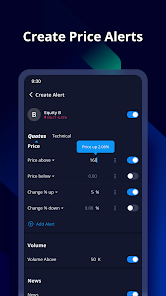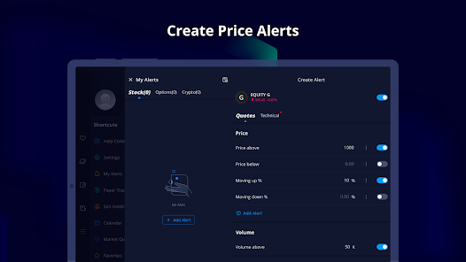 - パーソナル アラートを設定して、リアルタイムの株価の動きを把握し、迅速に投資します。